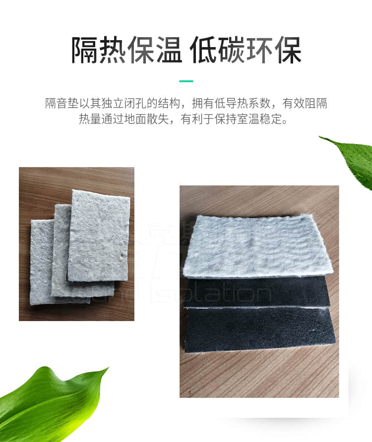具有隔音好,防水防潮,無毒環(huán)保,隔熱保溫,回彈力好,重量輕,使用壽命長等特點(diǎn),是解決住宅噪音問題的專業(yè)隔音產(chǎn)品,是一種新型節(jié)能環(huán)保材料。