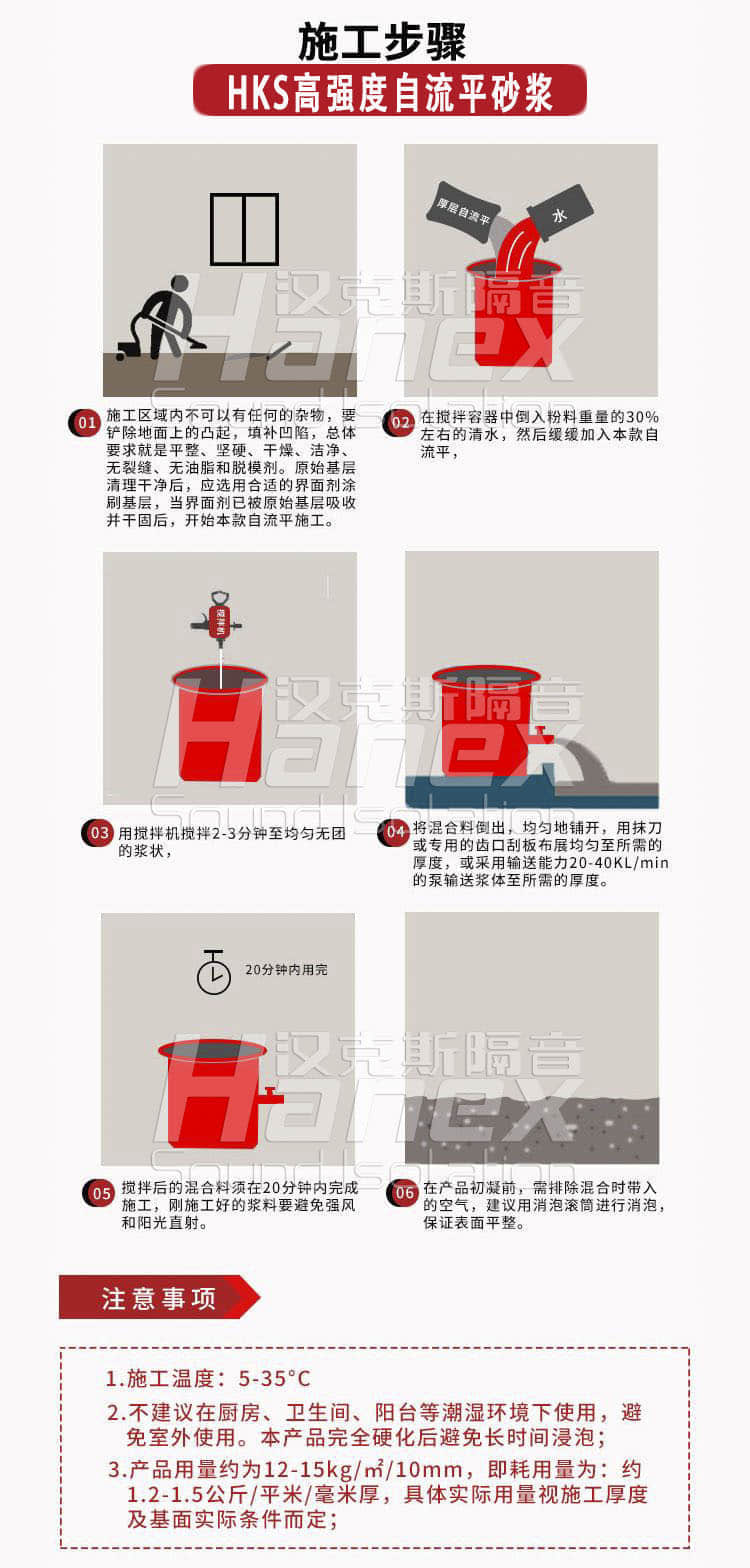 1.自流平砂漿加水量為35+2%,無需添加其他任何成份,先將水放入攪拌桶,再倒入自流平砂漿,用電動攪拌器攪拌2-5分鐘,應(yīng)充分?jǐn)嚢杈鶆?br/>